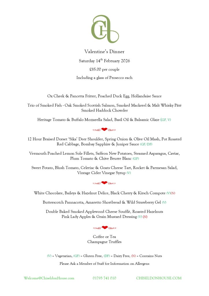 Enjoy Valentine’s Day at Chiseldon House.