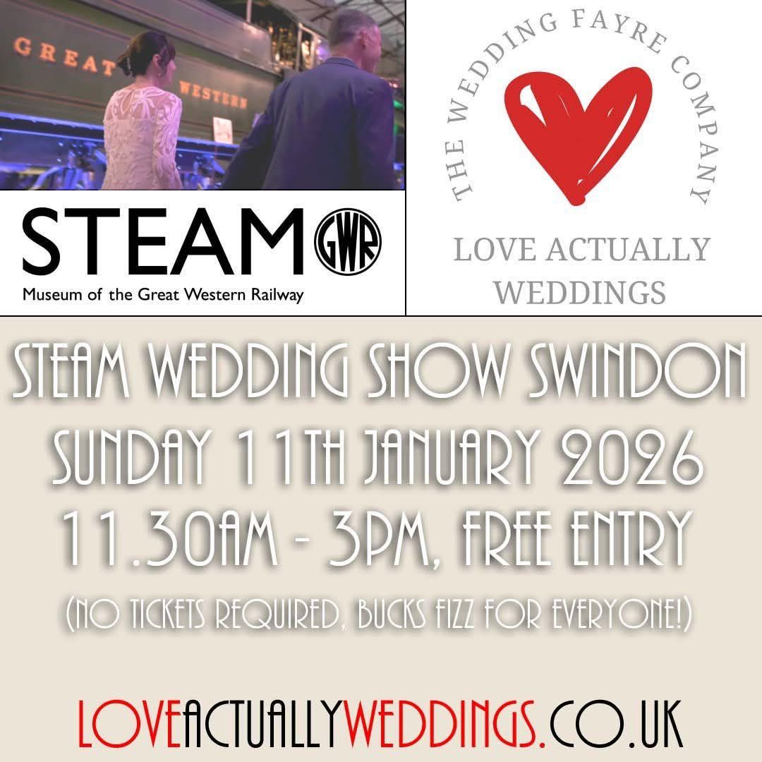 We will be at Steam Wedding Show Swindon on Sunday 11th January 2026, hosted by Love Actually Weddings.